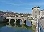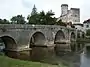 030Logo monument historique  MH (1908)[Mérimée 30]Puente viejo de Confolens[Structurae 25]Río VienneConfolensCharenteBandera de Nueva Aquitania Nueva Aquitania128luz1300siglo XIVusofábrica