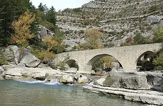 009Logo monument historique  MH (1862)[Mérimée 9]Puente romano de Céresteravin de l'EncremeCéresteAlpes de Alta ProvenzaBandera de Provenza-Alpes-Costa Azul Provenza-Alpes-Costa Azultotaluz1740usofábrica