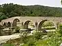 039Logo monument historique  MH (1916)[Mérimée 39]Puente del Diablo de Olargues[Structurae 33]Río JaurOlarguesHéraultBandera de Región de Occitania Occitaniatotaluz1200siglo XIIusofábricaArcos (3)