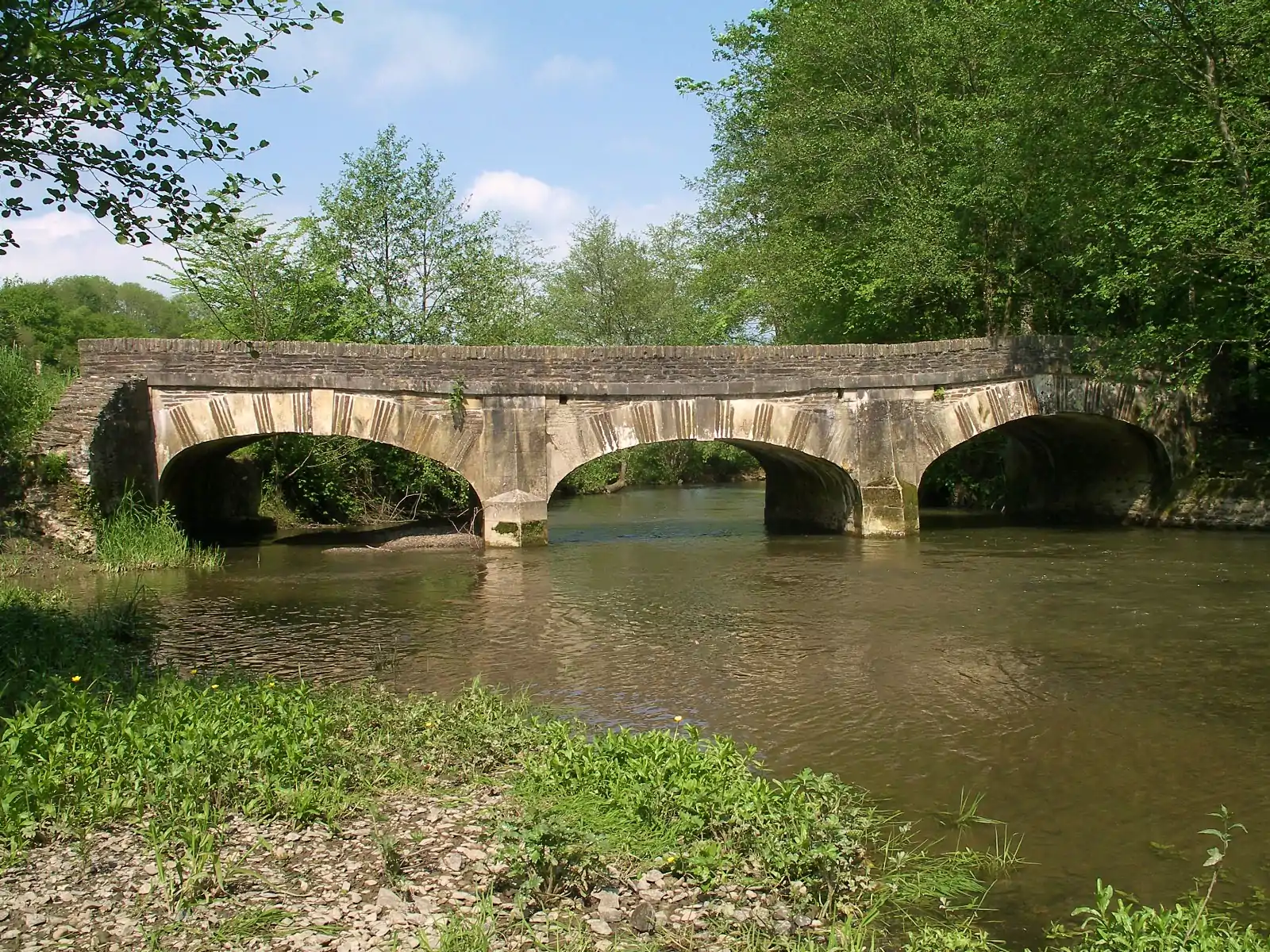031Logo monument historique  MH (1910)[Mérimée 31]Viejo Puente de los OuillèresRíoMerventVendéeBandera de Países del Loira Países del Loiratotaluz1400siglo Vusotipo