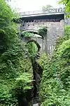 ![]() | Puentes del Diablo (Ceredigion)[2][W 1][3] | Afon Mynach | Devil's Bridge | Grado II Trois ponts construits les uns par dessus les autres Le village dans lequel ils sont situés a pris leurs noms : Devil's Bridge | Fábrica 1.er puente(SXI) 1 arche ogivale 2.º puente (1753) 1 arco rebajado 3.er puente (1901) tablero metálico | ||||