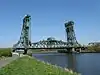 ![]() | Puente Tees Newport[68] | Tees | Middlesbrough | Primer gran puente levadizo en Inglaterra | celosía Acero Puente levadizo | 82 | 122 | ||