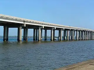 ![]() | 009 | Calzada del lago Pontchartrain | Lago Pontchartrain | Luisiana | 38 422 | 45,7 | 1956 (SB) 1969 (NB) | Carretera | |