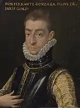 ![]() | 21 de febrero de 1550-14 de agosto de 1587 | Guillermo Gonzaga (Guglielmo) (24 de abril de 1538–14 de agosto de 1587) | Hijo de Federico II | Inicialmente reinó bajo la tutela de su madre y tíos. | Leonor de Habsburgo (3 hijos) | |||