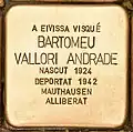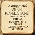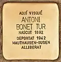 AQUÍ VISQUÉ ANTONI BONET TUR NASCUT 1892 DEPORTAT 1942 MAUTHAUSEN-GUSEN ALLIBERAT |