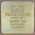 AQUÍ VISQUÉ EUGENIO BALDUZ ASENSIO NASCUT 1919 DEPORTAT 1940 MAUTHAUSEN ALLIBERAT |