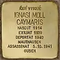 A PALMA VISQUÉ MANUEL MOLINA MARTÍ NASCUT 1913 DEPORTAT 1941 MAUTHAUSEN-GUSEN ASSASSINAT 30.11.1941 |