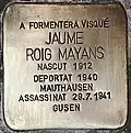 A FORMENTERA VISQUÉ JAUME ROIG MAYANS NASCUT 1912 DEPORTAT 1940 MAUTHAUSEN ASSASSINAT 29.7.1941 GUSEN |