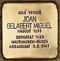 A MAÓ VISQUÉ SEBASTIÀ GARRIGA ARROM NASCUT 1910 EXILIAT 1939 DEPORTAT 1940 MAUTHAUSEN ASSASSINAT 23.7.1941 GUSEN |