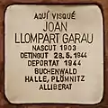 AQUÍ VISQUÉ JOSEP MARÍ JUAN NASCUT 1911 DEPORTAT 1944 MEISSEN, CHEMNITZ DACHAU ALLIBERAT |