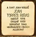 A SANT JOAN VISQUÉ JOAN TORRES RIBAS NASCUT 1914 EXILIAT 1939 DEPORTAT 1940 MAUTHAUSEN-GUSEN ALLIBERAT |