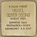 A PALMA VISQUÉ MIQUEL OLIVER SOCIAS NASCUT 1898 DEPORTAT 1941 MAUTHAUSEN ASSASSINAT 4.9.1941 |
