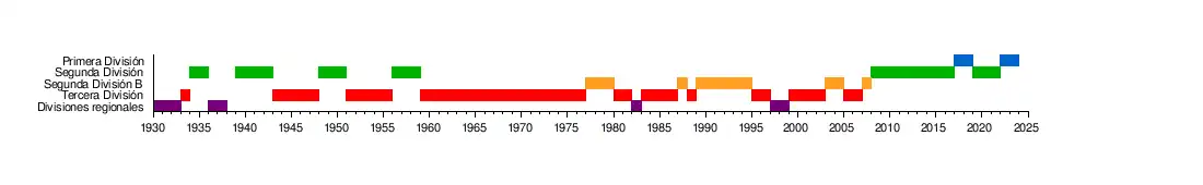 | Temporada | Categoría | Posición | J | G | E | P | GF | GC | Ptos | Copa | Entrenador | Presidente | |||