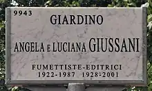 - Esta obra contiene una traducción derivada de «Angela e Luciana Giussani» de Wikipedia en italiano, concretamente de esta versión, publicada por sus editores bajo la Licencia de documentación libre de GNU y la Licencia Creative Commons Atribución-CompartirIgual 4.0 Internacional.