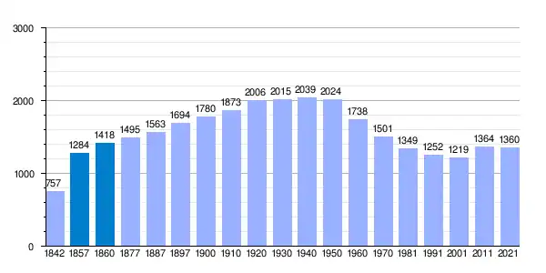 | Gráfica de evolución demográfica de Anglesola[1] entre 1842 y 2021 |