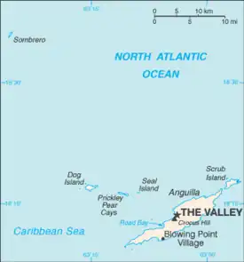 - Esta obra contiene una traducción derivada de «Geographie d'Anguilla» de Wikipedia en francés, publicada por sus editores bajo la Licencia de documentación libre de GNU y la Licencia Creative Commons Atribución-CompartirIgual 4.0 Internacional.