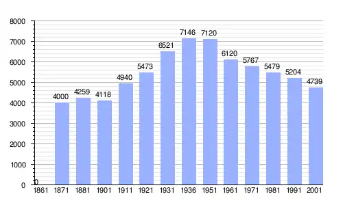 | Gráfica de evolución demográfica de Anguillara Veneta entre 1861 y 2001 |