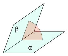 El Ángulo diedro entre dos planos α y β, es el menor ángulo que forman las intersecciones de dichos planos con un tercer plano perpendicular a ambos.