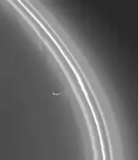 El anillo F es un anillo exterior al anillo A que está a 140 210 km del centro de Saturno y con una anchura entre 30 y 500 km y que se hizo rápidamente conocido durante el sobrevuelo de las naves Voyager por presentar ondulaciones y trenzados que era la primera vez que se observaban. El anillo está a 4000 km del borde exterior del anillo A. Tiene dos satélites pastores: Pandora y Prometeo.[1]