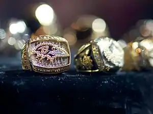 Un anillo de campeonato es un anillo presentado a los miembros de los equipos ganadores en las ligas deportivas profesionales de América del Norte,[1] así como torneos universitarios. Los anillos de campeonato se limitan principalmente a los deportes norteamericanos. Dado que la liga solo otorga un trofeo de campeonato al equipo ganador, los anillos de campeonato se distribuyen como un recuerdo para que los jugadores y los oficiales del equipo los guarden para simbolizar su victoria. Las medallas de los ganadores (y las medallas de los subcampeones) no se otorgan en los deportes profesionales de América del Norte, a diferencia de los deportes olímpicos y los torneos de fútbol.[2] Los anillos de campeonato son distribuidos y pagados por el equipo ganador (aunque algunas ligas pueden subsidiar parcialmente el costo), en contraste con las medallas que otorga la liga o el organismo rector de la competencia.