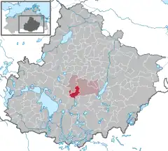 Se encuentra a poca distancia al este del lago Müritz, el mayor de Alemania.