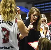 En la temporada 2022-23 entrenó al equipo de Liga Femenina Lointek Gernika, logrando clasificarlo tanto para la Copa de la Reina hasta semifinales,[13] como para los Playoffs Liga Endesa Femenina por el título,[14] donde cayeron en cuartos de final.[15] A pesar de los buenos resultados, no siguió contratada tras finalizar su contrato de sustitución de la baja del entrenador habitual, Mario López.[16][17]
