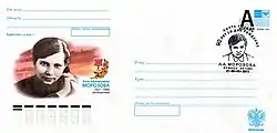 La imagen de Morozova apareció en un sello postal de la Unión Soviética de 1966 y en una tarjeta postal de la Federación de Rusia (derecha). Múltiples calles en Briansk llevan su nombre y fue declarada póstumamente Héroe de la Unión Soviética en 1965.[3] Además recibió las siguientes condecoraciones: