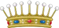 Montmorency: En campo de oro, una cruz de gules, cantonada de 16 aleriones de azur (Montmorency). Timbre: corona de Príncipe.