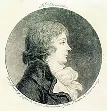 ![]() Retrato de perfil de Théroigne de Méricourt, dibujado por Jean Fouquet y grabado por Gilles-Louis Chrétien en 1792 | ||
