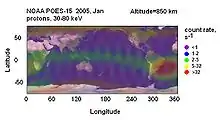 - La banda de flujo protónico cercano al ecuador geomagnético.