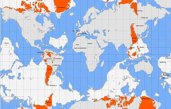 - el sur y el oeste de Sudamérica con antípoda en Asia oriental,