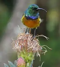 El suimanga pechinaranja[2] (Anthobaphes violacea), también conocida como nectarina de pecho anaranjado,[3] es una especie de ave paseriforme de la familia Nectariniidae endémica del fynbos de Sudáfrica. Es la única especie del género Anthobaphes.[3] Anteriormente se clasificaba en el género Nectarinia.