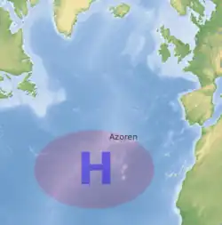 El denominado anticiclón de las Azores (también conocido como Anticiclón de Bermudas-Azores en Norteamérica) es un anticiclón dinámico subtropical situado, normalmente, en el centro del Atlántico Norte, a la altura de las islas portuguesas de las Azores, en las llamadas Latitudes del caballo. Es el centro de acción que induce sobre el clima de Europa, Norte de África y América del Norte.