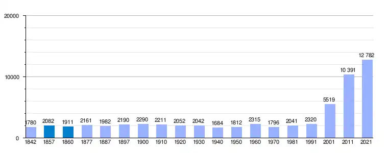 | Gráfica de evolución demográfica de Antigua[14] entre 1842 y 2021 |