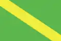 Paño rectangular de color verde, con una franja diagonal de color amarillo, que va desde el ángulo superior del asta hasta el inferior del batiente, de anchura 1/5 del total de la anchura del paño.