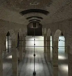 Las actuaciones más importantes se redujeron a la ejecución de un nuevo pavimento-solera de hormigón pulido, la instalación de paneles DM recubriendo las paredes, la ejecución de una nueva escalera metálica, la sustitución de puertas de acceso y la cubrición de las aperturas de las bóvedas con elementos metálicos a modo de rejas, de tal modo que la única compartimentación interior realizada se encuentra bajo la nueva escalera para albergar el cuadro eléctrico.[8] «Nuestra actuación constituye una fase intermedia entre la consolidación de este espacio especializado a exposiciones y acontecimientos públicos».[1]