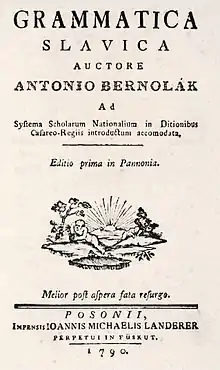 Bernolák fue el primero en establecer reglas para la estandarización de la lengua eslovaca escrita (en la década de 1780), basada en los dialectos eslovacos occidentales que se hablan alrededor de Trnava, con algunos elementos de los dialectos eslovacos centrales.[1] Sin embargo, dicha lengua, denominada Bernolákovčina, no fue aceptada como lengua nacional estándar, aunque supuso un hito importante en la formación de la nación eslovaca moderna y sirvió de base para las actividades de la Slovenské učené tovarišstvo ("Hermandad de eruditos eslovacos"), fundada en 1792 en Trnava.