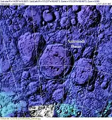 La parte inferior del cráter Antoniadi se midió mediante un altímetro láser (LALT) a bordo de la misión japonesa Selenological and Engineering Explorer (SELENE) resultando ser el punto más bajo de la luna: descansa a 9 kilómetros de profundidad con respecto a la cota cero media de la superficie de la Luna.[1]