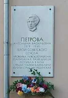 Antonina Vasilievna Petrova (en ruso: Антонина Васильевна Петрова; 14 de marzo de 1915 – 4 de noviembre de 1941) fue una partisana y enfermera soviética que combatió integrada en las filas del Ejército Rojo durante la Segunda Guerra Mundial. Después de que su campamento fuera rodeado por las tropas del Eje, luchó hasta quedarse sin munición y después se suicidó. Por está acción fue galardonada, el 8 de abril de 1941 póstumamente, con el título de Héroe de la Unión Soviética.[1]