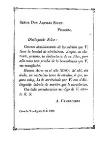 Antonino Cambaceres falleció en una quinta de la localidad de Glew, provincia de Buenos Aires, en 1888.[1]