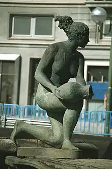 - Dos figuras en la Fuente del nacimiento del agua en la plaza de España de Madrid (1974).