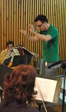 ![]() Gervasoni dirigiendo un ensayo para un concierto de su música en el Colegio Santa María Marianistas (nov. 2012) | ||