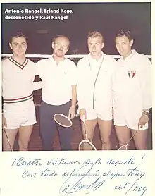 - 1966 - Campeón de dobles, junto con su hermano Raúl Rangel, del Torneo Internacional de Bádminton de Perú.[7]