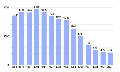| Gráfica de evolución demográfica de Anversa degli Abruzzi entre 1861 y 2001 |
