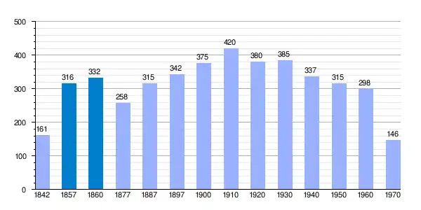 | Gráfica de evolución demográfica de Anzánigo[4] entre 1842 y 1970 |