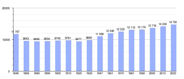 Todos los datos históricos relativos al actual municipio, el siguiente gráfico refleja su evolución demográfica, incluyendo municipios después de efectuada la fusión el 1 de enero de 1977.