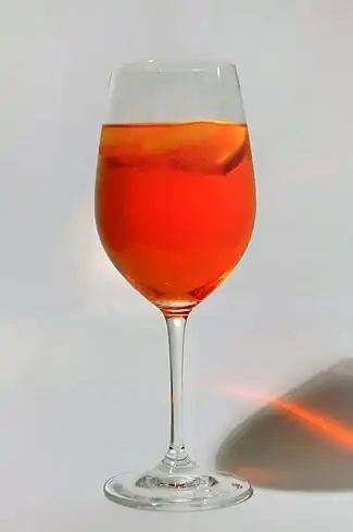 Uno de los cócteles más populares hechos con Aperol es el Spritz.[2] La preparación utiliza una copa de vino llena de hielo y luego se mezcla el vino espumoso, Aperol y soda en las siguientes porciones: