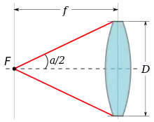 donde es la distancia focal y el diámetro de la apertura.