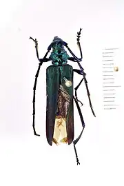 Se distribuye por China.[1] Mide 28 milímetros de longitud.[1] El período de vuelo ocurre en el mes de julio.[1]