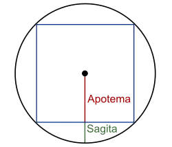 Una vez calculada la apotema, la sagita se obtiene como .